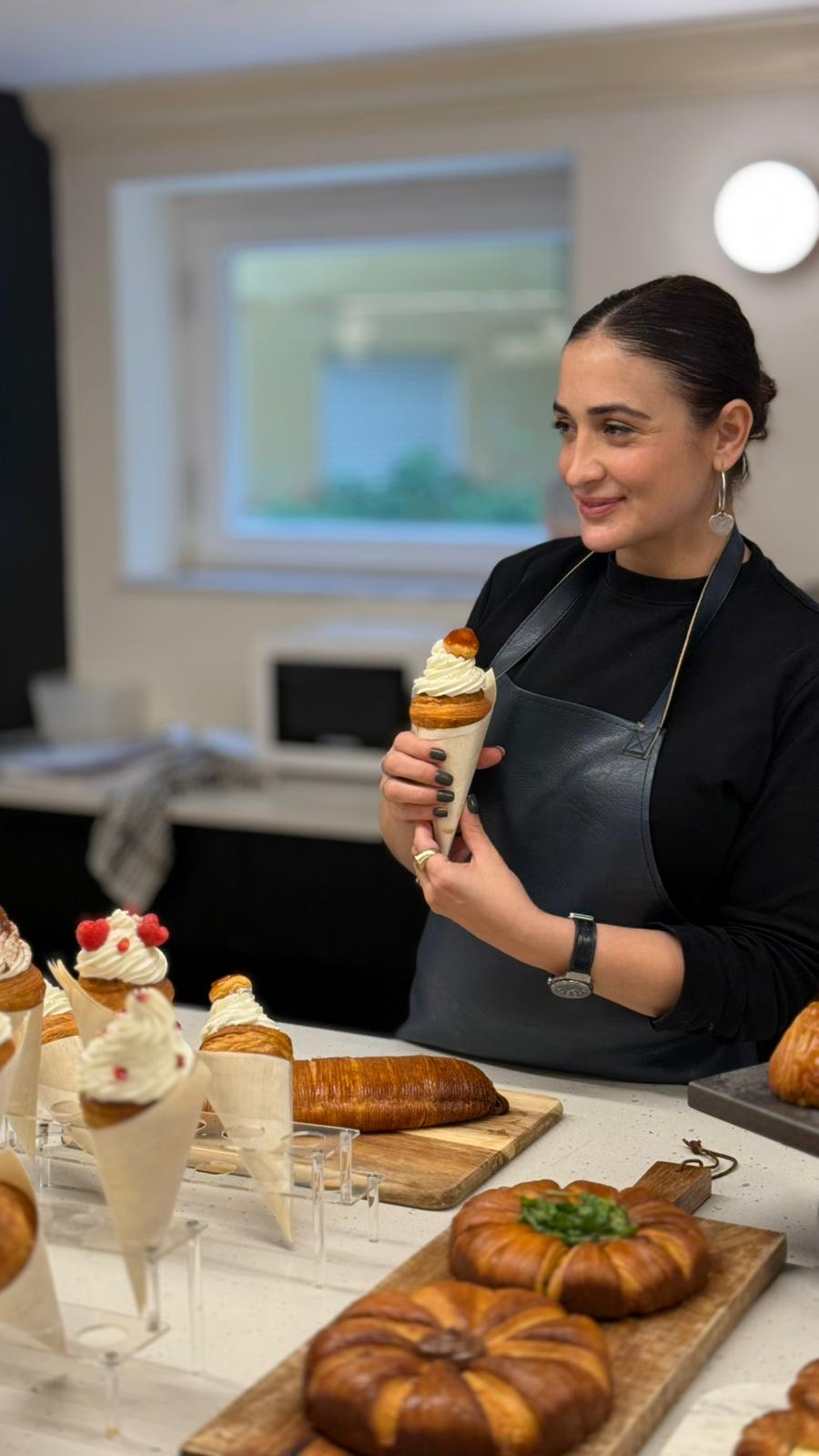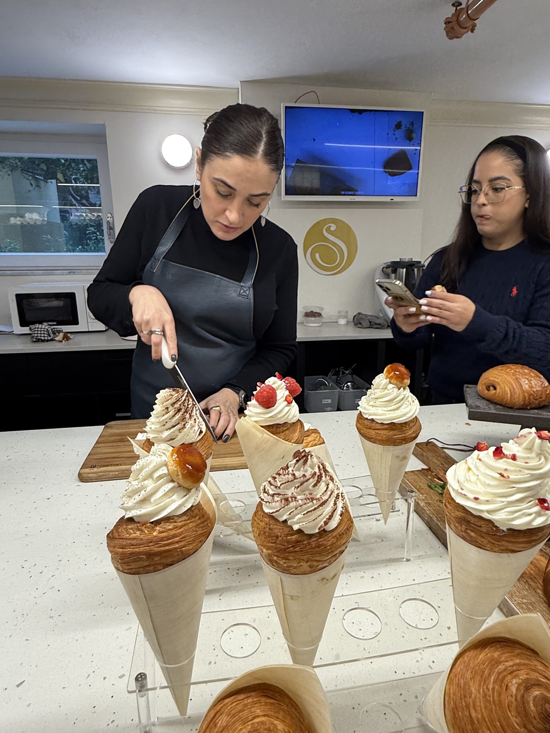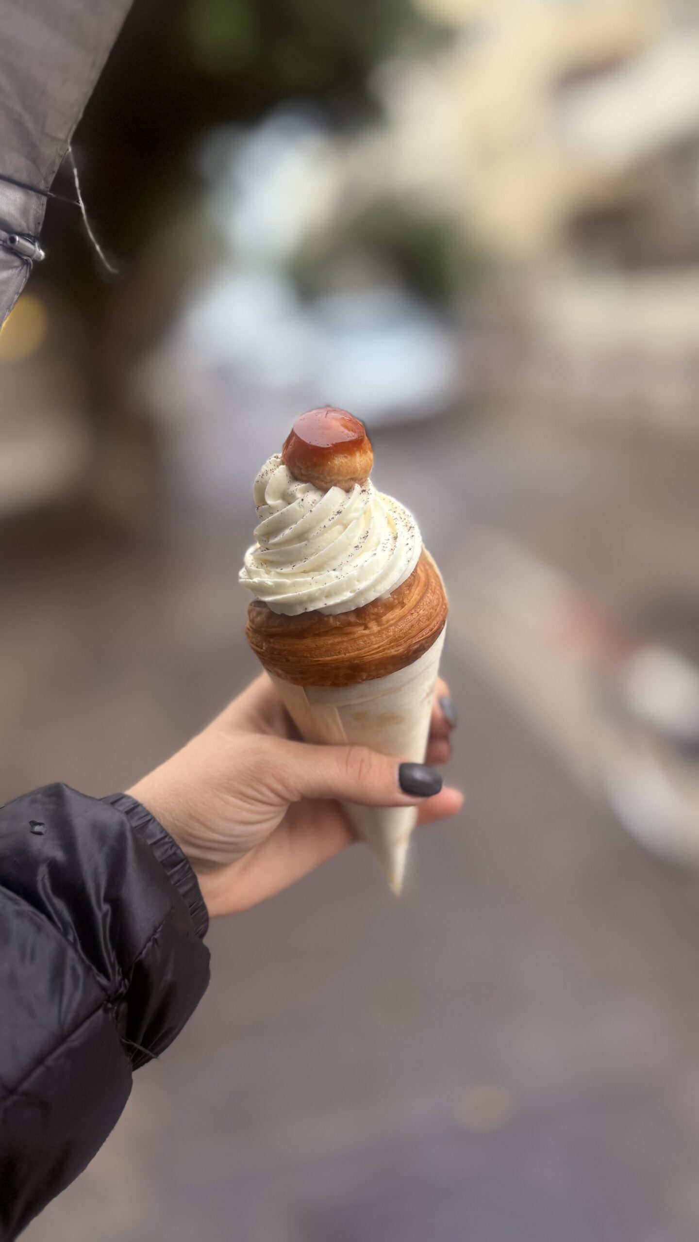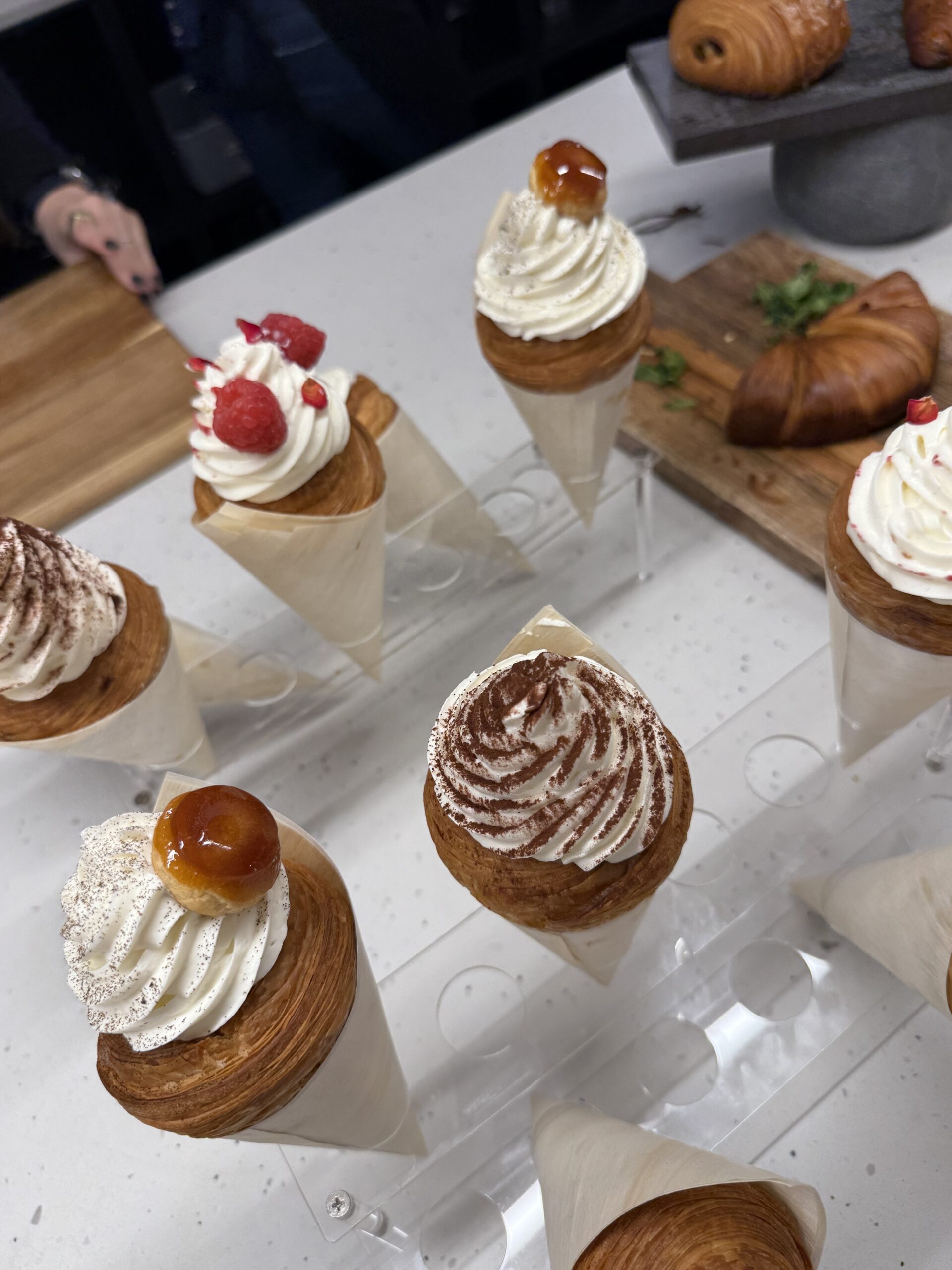 קרואסון כוס במילוי קרמבל שוקולד לוז.